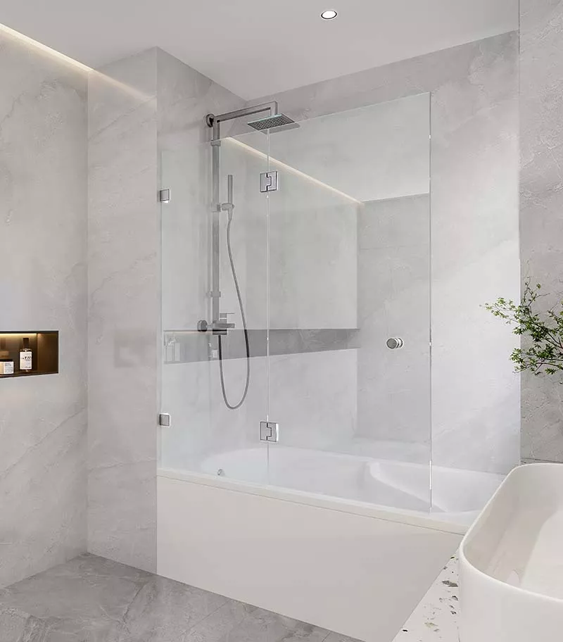 - Frameless brushed nickel finish shower screen design to follow the future trends