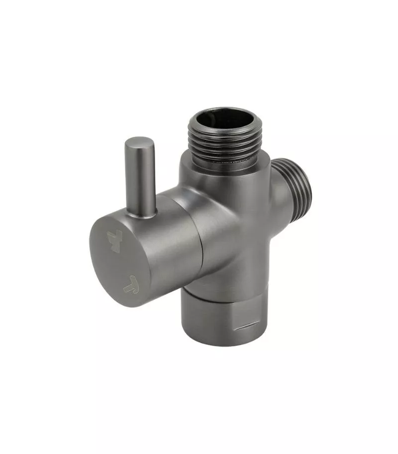 Presenting the Aqua Toilet Bidet Spray Diverter in Gunmetal Grey. This diverter is engineered to integrate effortlessly with your existing toilet and bidet spray, enabling an easy transition between standard toilet use and a refreshing bidet experience. Made from premium solid brass and featuring a gunmetal grey finish, this diverter combines practicality with sophisticated style, enhancing the overall look and functionality of your bathroom.