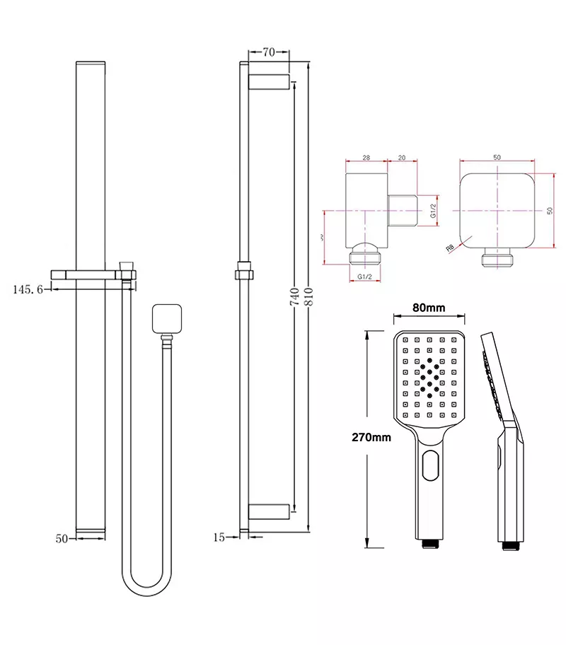 - Square Handheld Shower Spray on rail