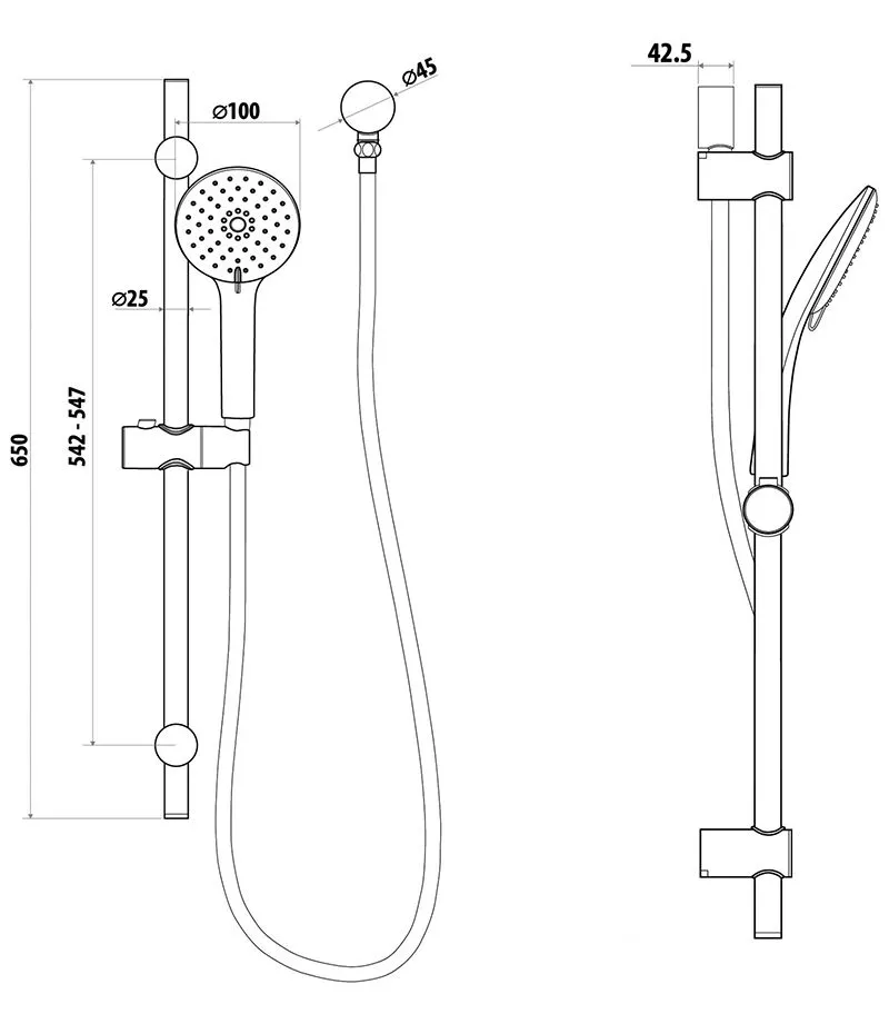 - Hand shower rail x 1