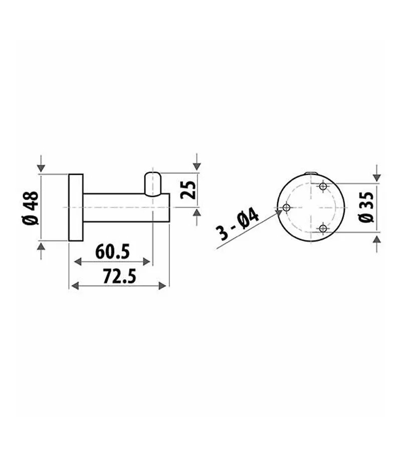 - Robe hook 72.5mm x 1