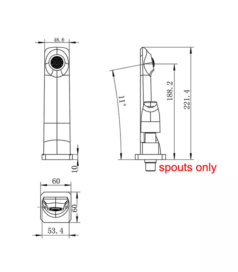 - Fixed spout wall-mounted on the plate