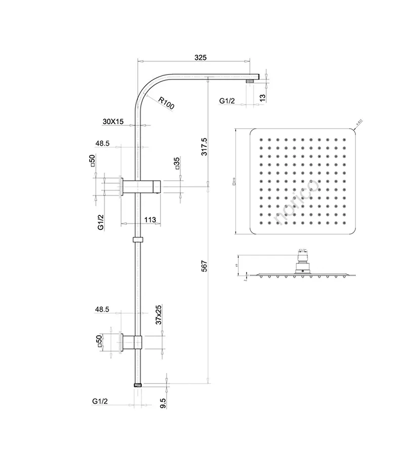 - 250mm (10″)shower head