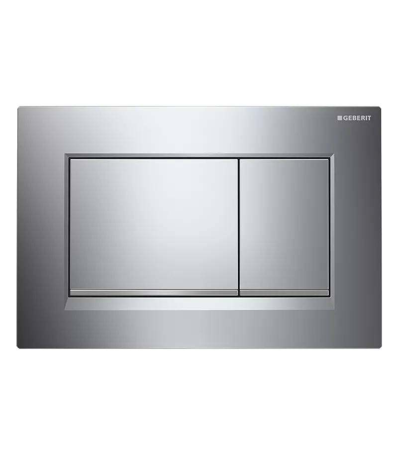 Geberit front actuation button Sigma30KH comes with a square chrome plate with matt trim in a bold design.