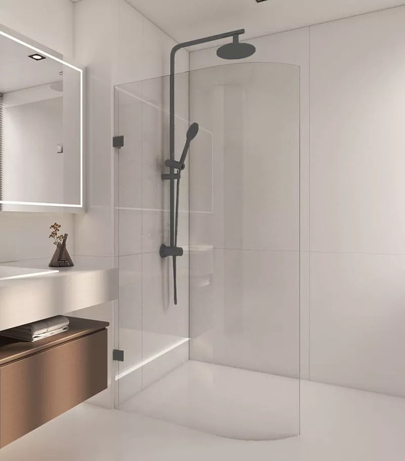 - Walk-in glass screen available in a range of sizes: 900mm, 1000mm and 1100mm