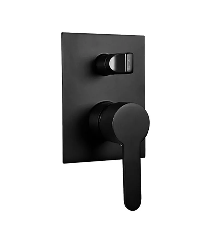 Revamp your bathroom and add a statement of designer style with our Loui Matt Black Wall Or Shower Mixer With Diverter And Square Backplate – Premium solid brass construction with a stylish paddle handle to divert between shower and bath with ease.