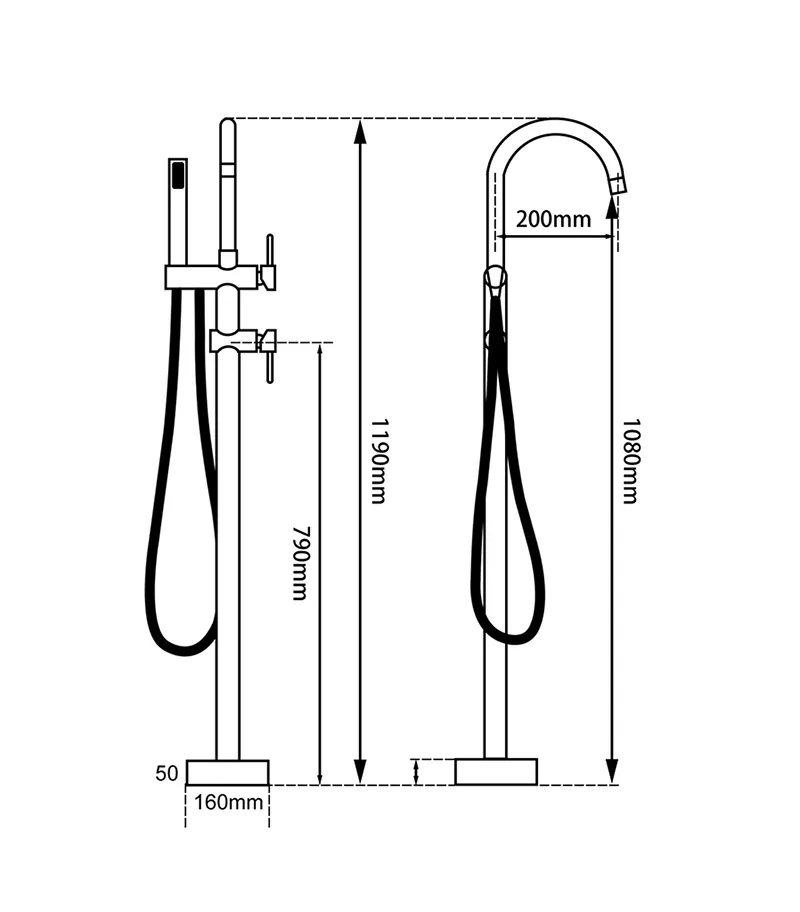 - Dual pin handles: Top one for hot/cold switch, the bottom for dual water outlets