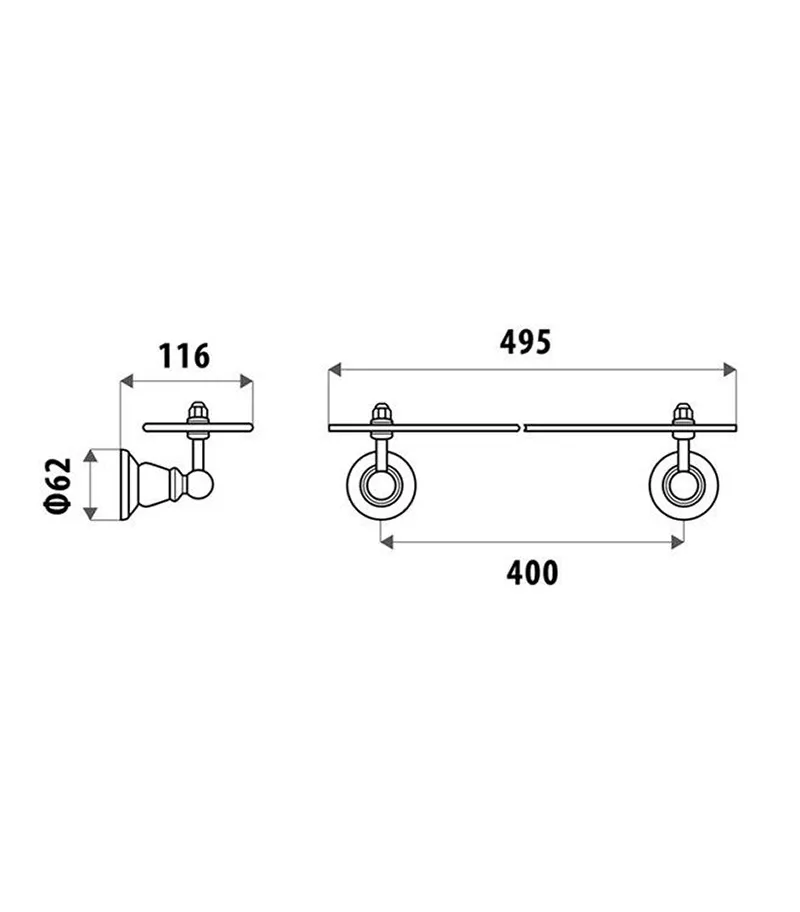 - Noosa Chrome Glass Shelf dimension: L 495mm x W 116mm x H 62mm Approx.