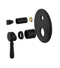IKON Clasico Matt Black Solid Handle Wall Mixer With Diverter
