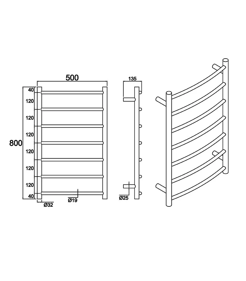 - Size: 500mm (L) x 800mm (H) x 135mm (D)