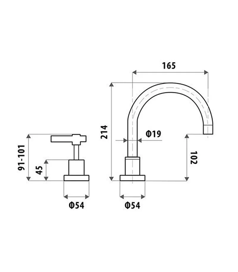 - Three-piece tapware with 3/4 turn ceramic disc cartridge mechanism