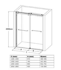 Adjustable Framed Sliding Wall To Wall Shower Screen – Matt Black
