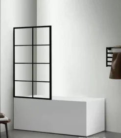10mm Glass Fixed & Swing Panels Hinged Bath Screen – Matt Black