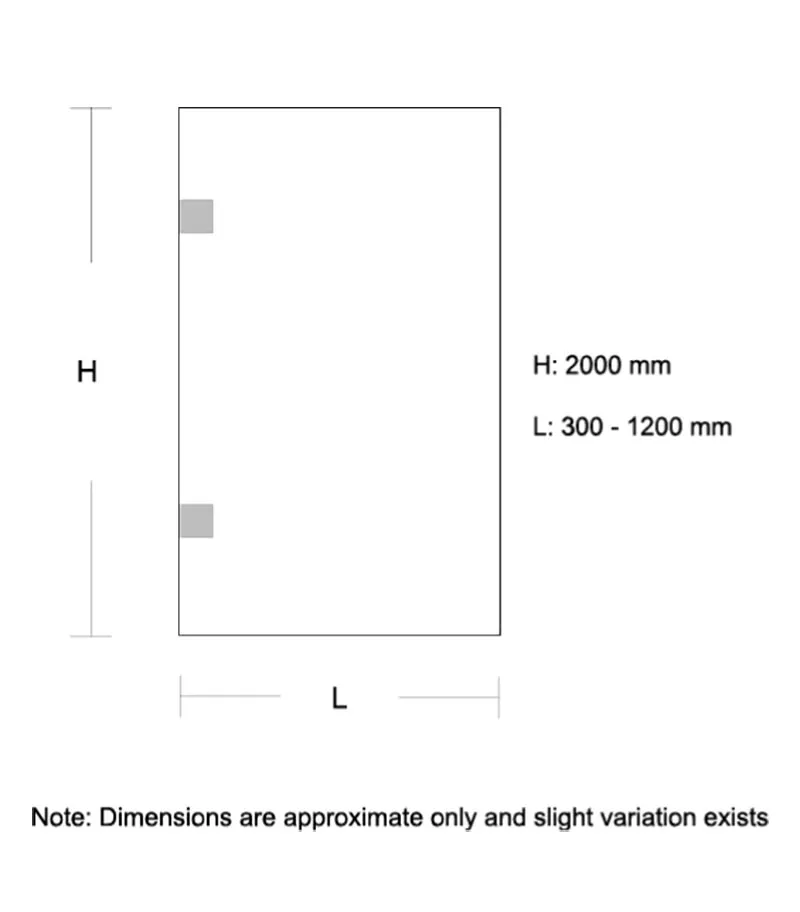 - Walk-in glass screen available in a range of sizes: 300mm to 1200mm