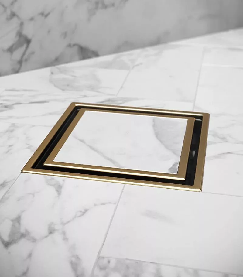 Our Tile Insert Floor Waste – Matt Gold will bring a hidden look for your bathroom to the next level, complete with solid brass construction.